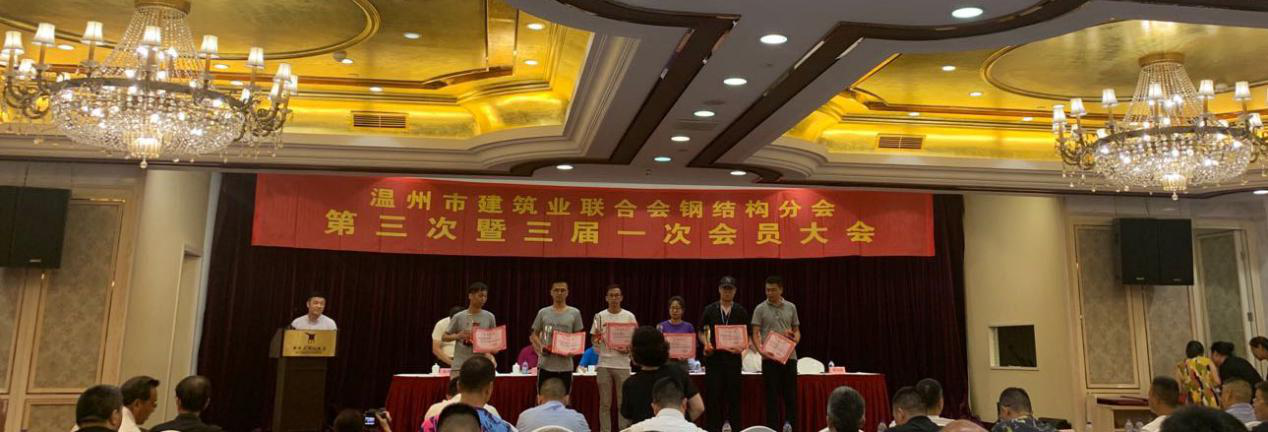7月10日下午,我市在王朝大酒店召開溫州市建筑業(yè)聯(lián)合會鋼結構分會第三次暨三屆一次會議大會。溫州市建筑業(yè)聯(lián)合會會長胡正華、副會長諸經(jīng)宇,鋼結構分會會長方云杰等出席會議。